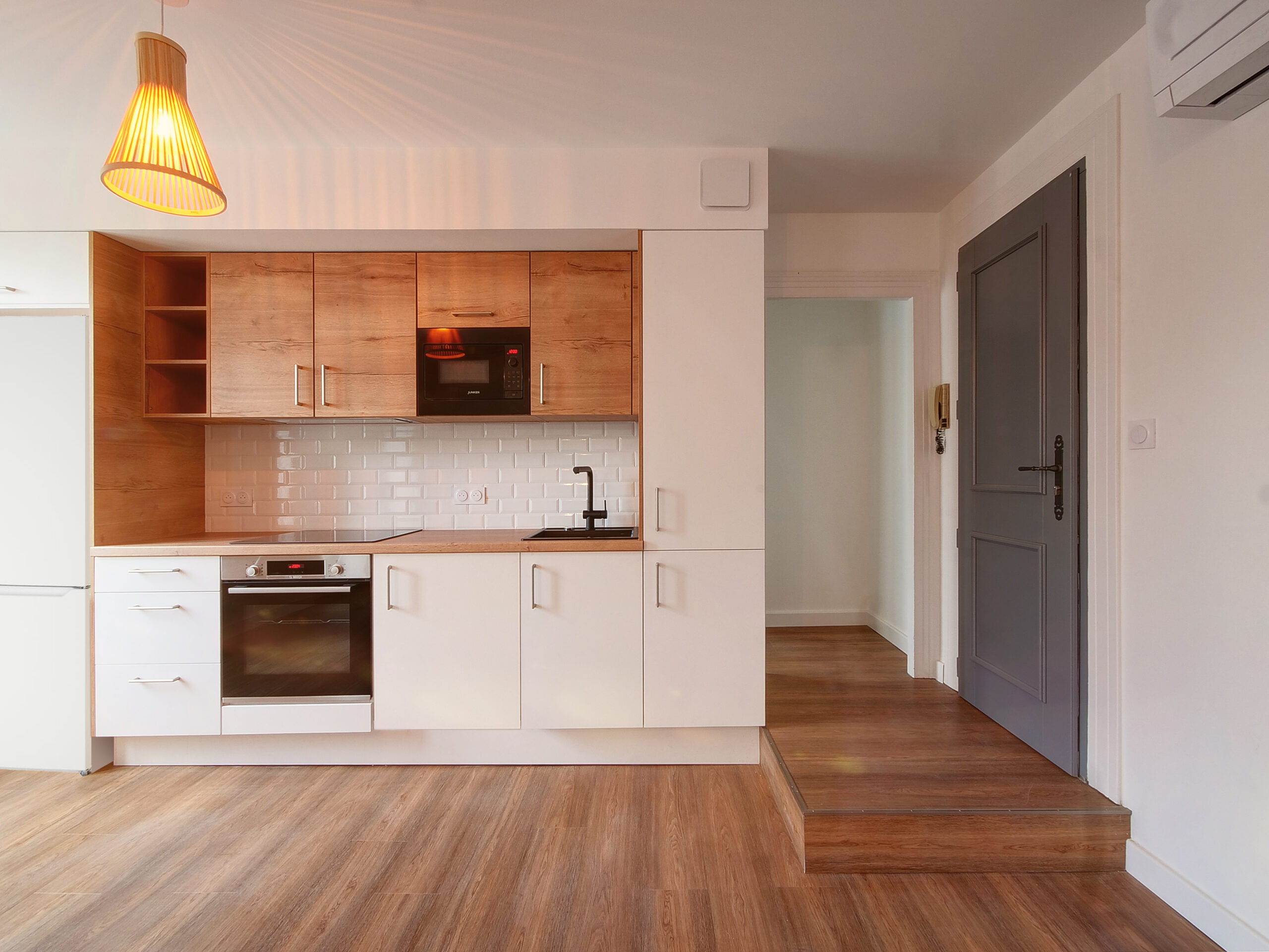 L’appartement offre une pièce de vie spacieuse avec cuisine ouverte, une chambre indépendante, et une salle d’eau avec WC.